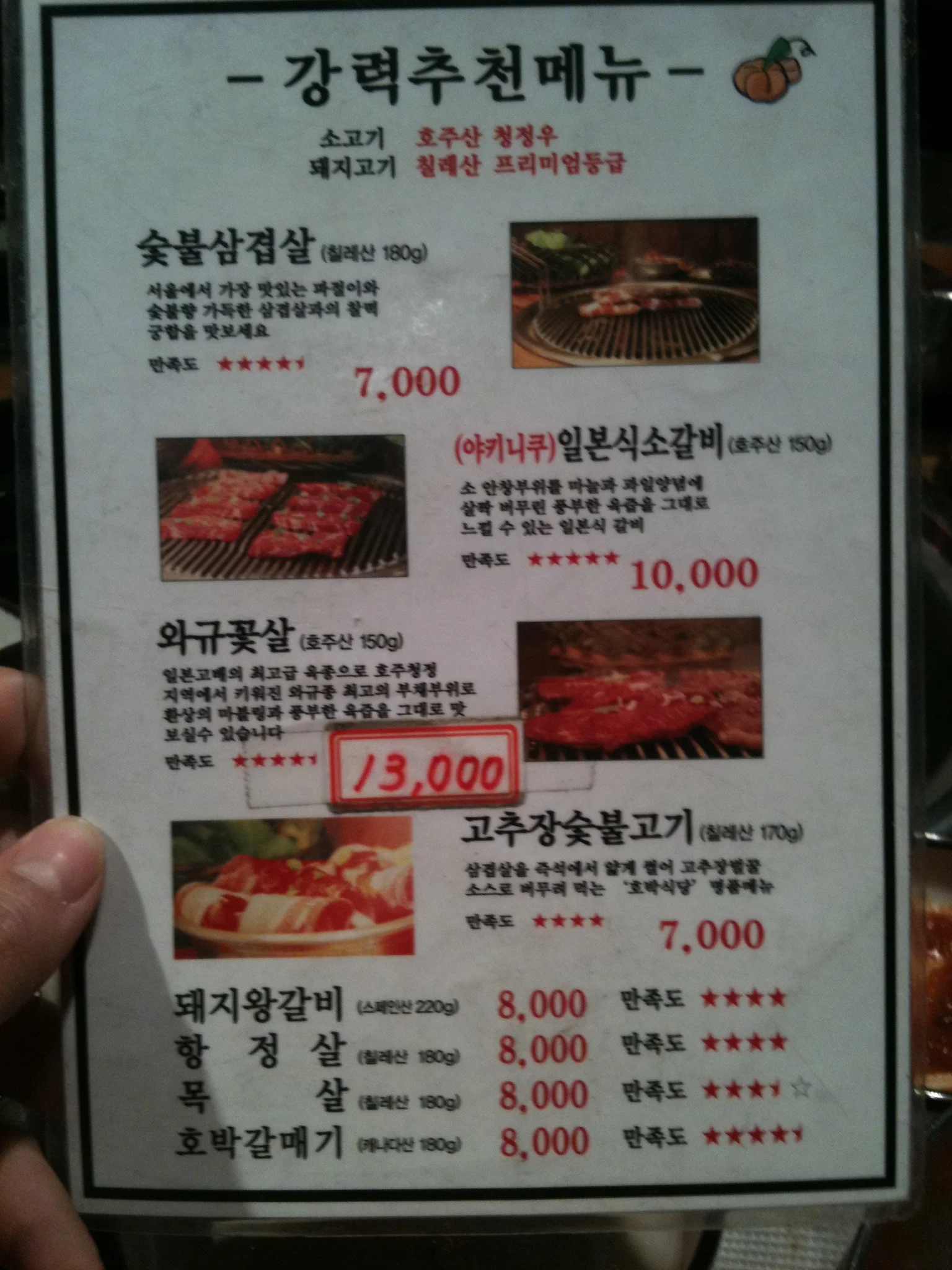 Directions: Hangangjin Station, Exit 2, walk down towards the Hannam Bridge for about 10 minutes. On your right, you will see a gas station. Veer right, and then you will see the restaurant on your right hand side. It's right behind Chicago Dentist, Pizza Hut and the Sentinal Crossfit gym.