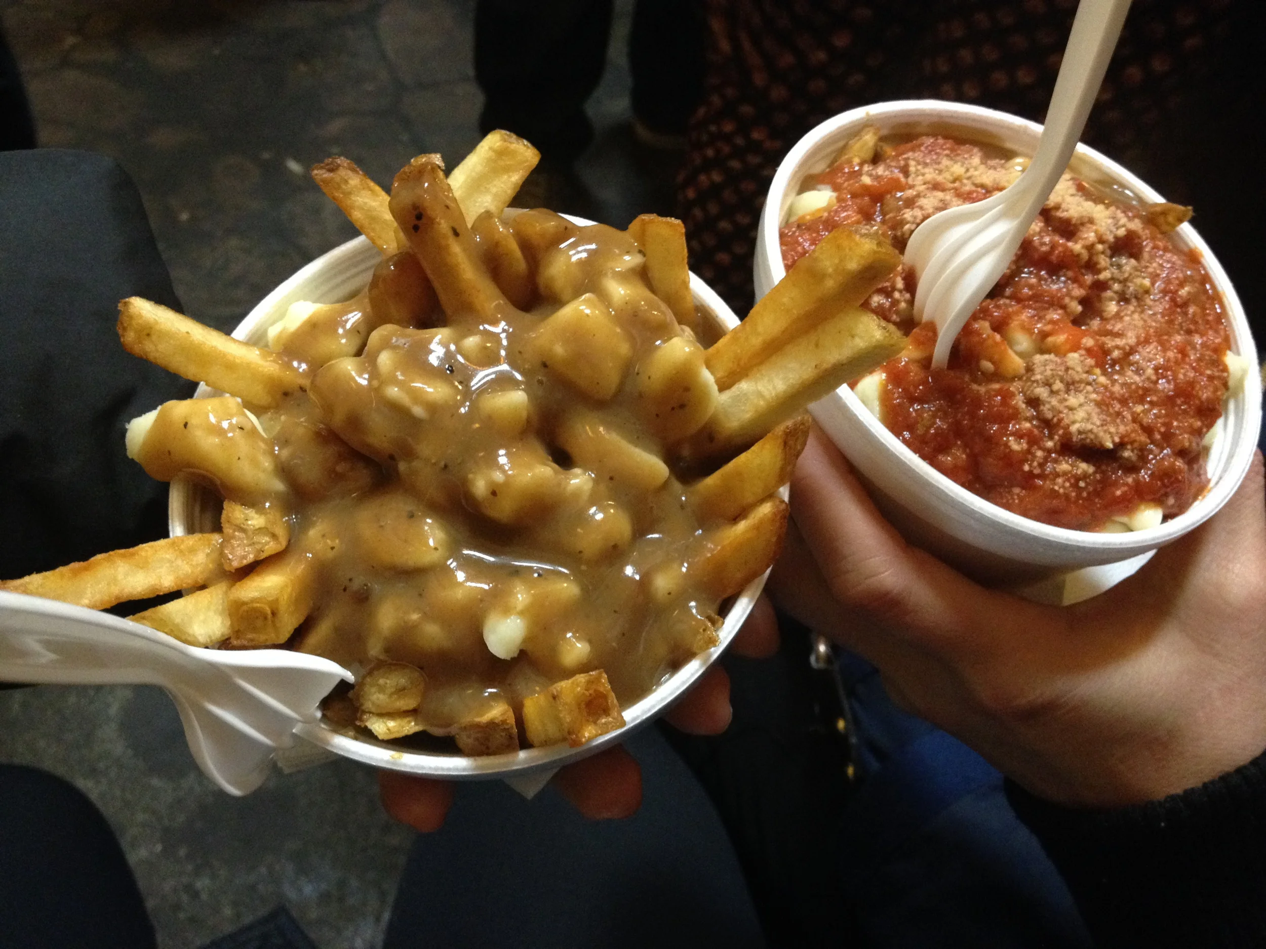 Poutine (pronounced "poo-tang, but drop the "ng" on the tang)!