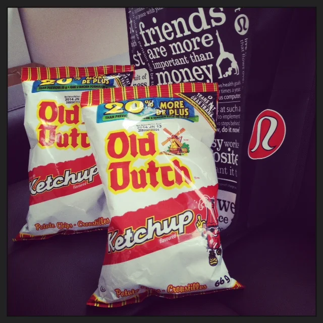 The original boxes of Old Dutch brand chips. Inside each box are two smaller foil bags for your chip eating convenience! Ketchup is my go-to flavour, but I also like to mix a bag of this and a sour cream and onion together to get a nice tangy and creamy combination!