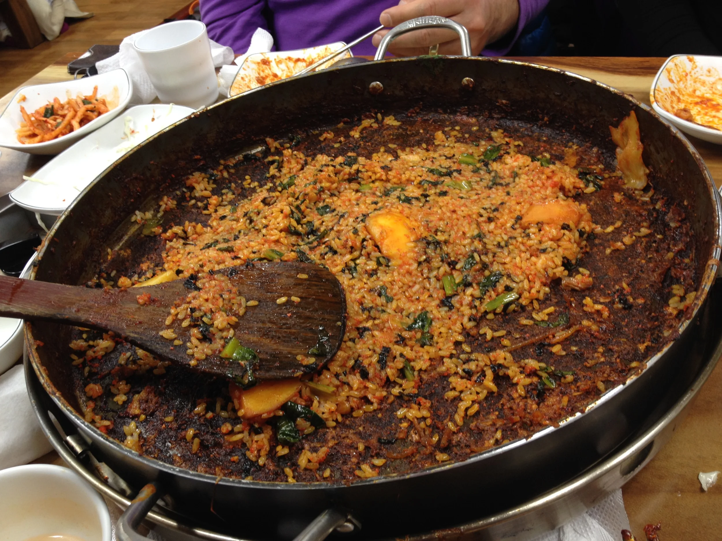After, you have 2 choices of fried rice - regular or fish roe. I love the fish roe rice (알밥) and they blend it with dried seaweed, bits of more sesame seed leaf, sesame seed oil all together with the leftover sauces and bits of chicken and veggies.