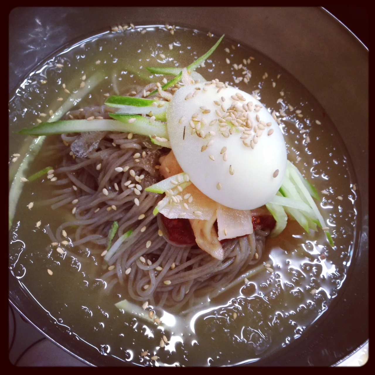 매밀막국수 - Buckwheat noodles in an icy cold vinegary broth. This is awesome here - the noodles are similar to nengmyun but they are slightly thicker, softer yet still chewy. Even though we were so full, this is definitely worth getting for a refreshing kick at the end of the meal. Great to share!