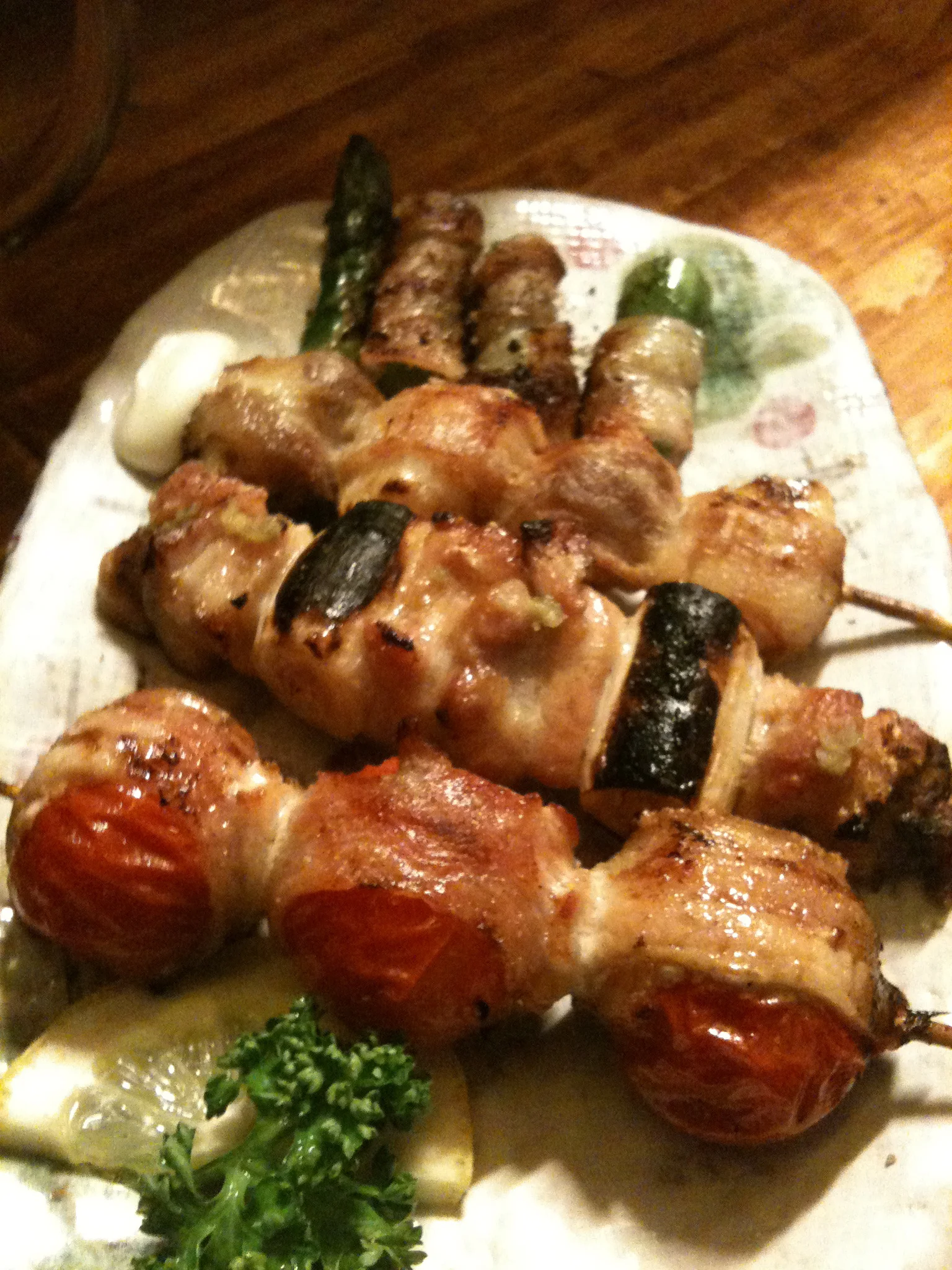 The bacon wrapped tomatoes and quail eggs are good too.