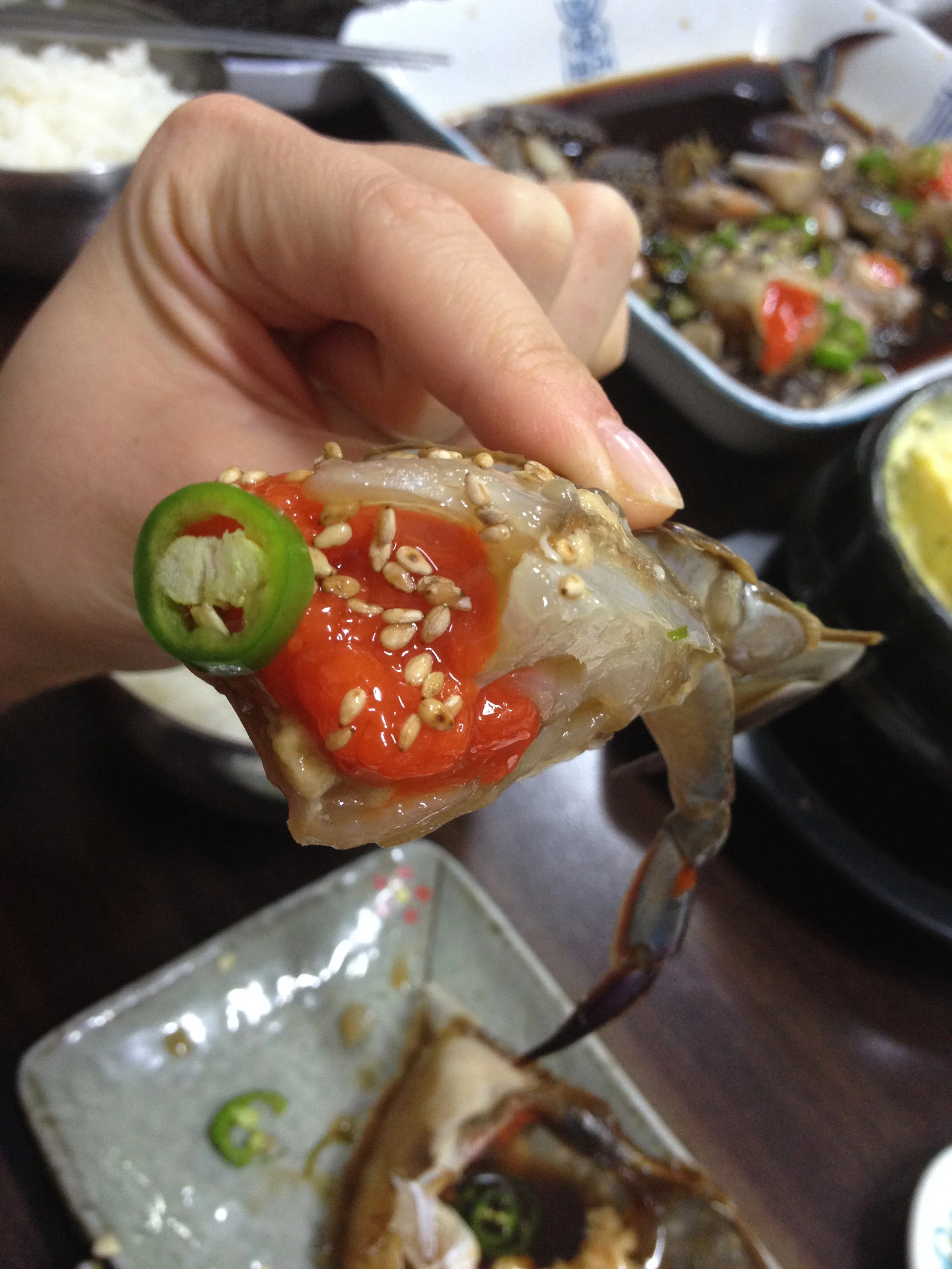 What? JinMi Shikdang (진미식당) a small hole-in-the-wall place that specialized in Korean raw blue crab in a soy sauce marinade. Set menu priced at 31, 000won per person.