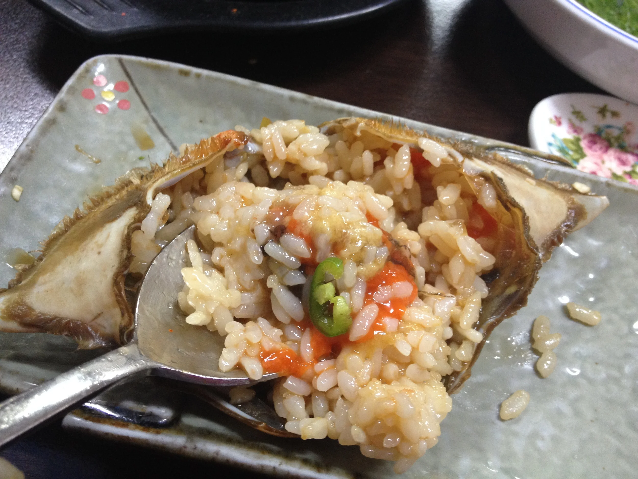 The best part (next to sucking the body of the crab meat off of the tip of the legs)...is mixing rice in the shell with the crab roe! Make sure you get all the insides scraped out from the corners of the shell! Wrap this in a piece of seaweed and enjoy - DELICIOUS!