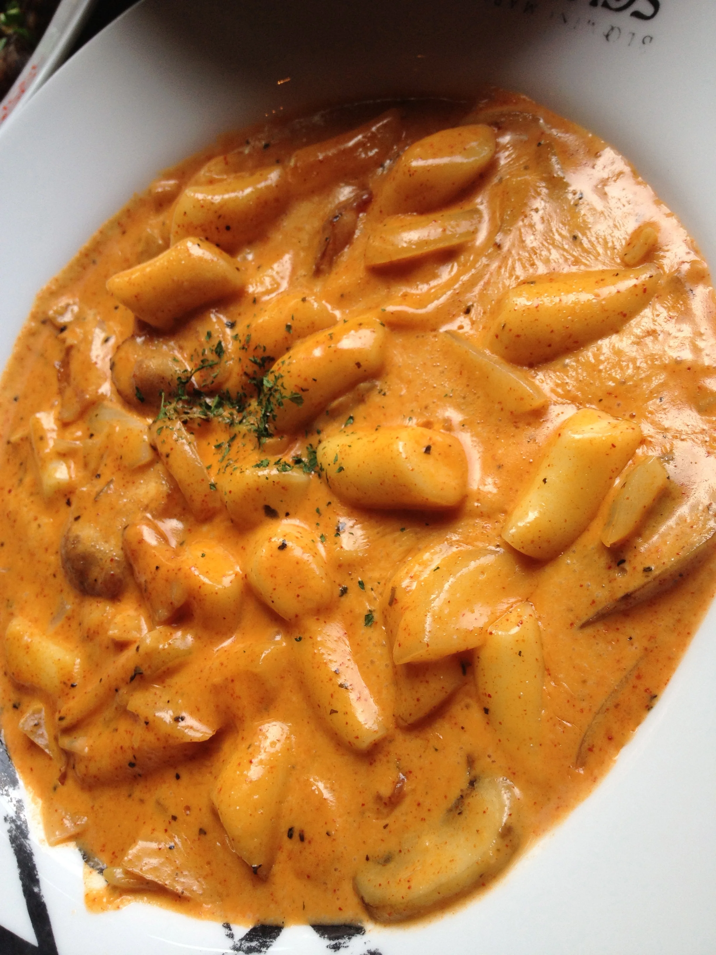 My favourite of all the versions of Dukbokki. It's a combination of creamy carbonara and spicy dukbokki. The spice level and creamy combination make for a perfect duo!