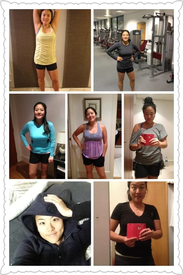 From December 1, 2012 to February 2013, me and my friend Marsh decided to go "Insane" with a reboot to our workout routine! I wanted to also try a challenge of wearing different lululemon outfits with all the piece I already own, so I was fasting buying anything new for 6 months. Our reward when we complete the Insanity 60 day workout challenge was to buy each other a new lulu piece (so I technically still didn't buy anything for myself until the fast was over!). Since we were on holidays over 2 weeks of the challenge, we had to take a pic for each day we did the workout, and I loved mix and matching my different fit and functional lululemon pieces to feel good while doing my workout - that ended up being half the fun too! ^^